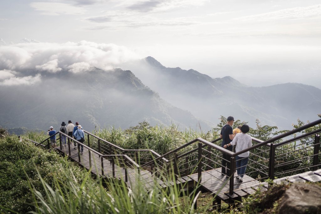 很快地就抵達二延坪步道觀景台,這裡人就比較多了!也因為疫情,就速速離開涼亭,回到我們的營區。在二延坪步道上幫爸媽拍了照片,剛好碰到下完雨的天氣,出現雲海怎麼拍怎麼美。